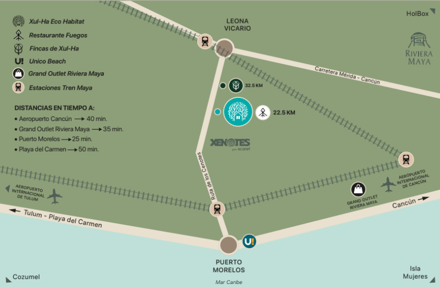 Xul-Ha Eco Habitat se encuentra en la Carretera Km 22.5 del corredor turístico Ruta de los Cenotes. A solo 15 minutos de la playa de Puerto Morelos
