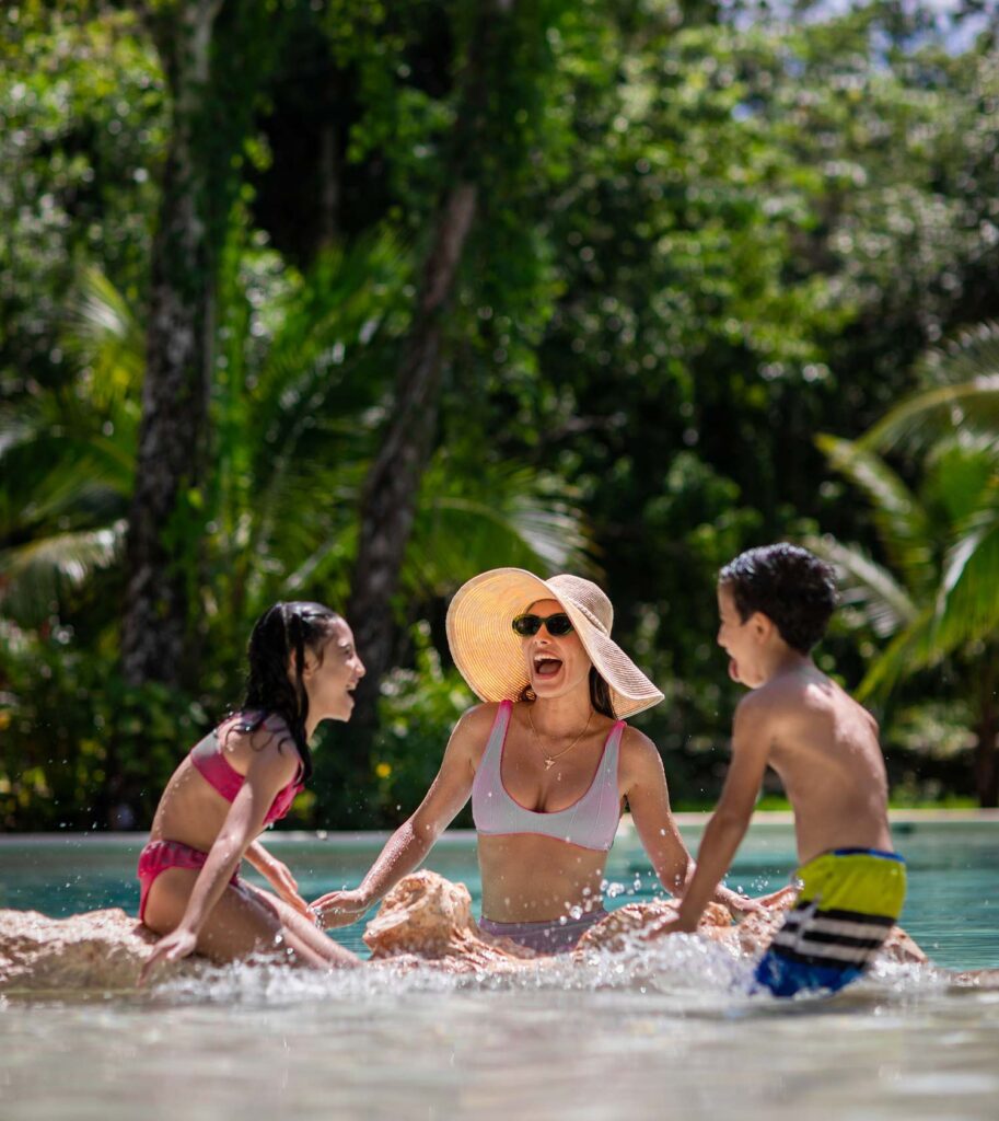 El restaurante al aire libre "Fuegos de Xul-Ha" ofrece una deliciosa fusión de sabores multiculturales, utilizando ingredientes puros, sostenibles y de alta calidad, y cocinando sólo con leña de la selva local.